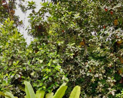 Occupant une maison coloniale, les spacieuses chambres lumineuses et climatisées comprennent un balcon avec hammac offrant une vue panoramique sur la mer et le jardin ainsi qu'une salle de bains privative.