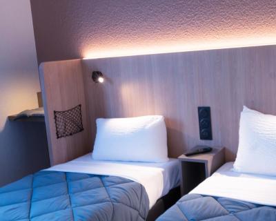 Les chambres sont modernes, lumineuses et climatisées. Elles sont dotées d'une salle de bains privative moderne, d'une télévision et d'un espace de travail. Elles offrent un espace fonctionnel pour les courts séjours ou les étapes dans la région.