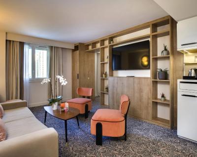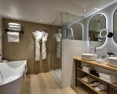 Les chambres spacieuses sont toutes dotées de la climatisation et d’une décoration contemporaine unique. Toutes disposent d'une grande télévision à écran plat, d'un plateau de courtoisie, de 2 bouteilles d'eau gratuites et d'une salle de bains privative avec baignoire ou douche.