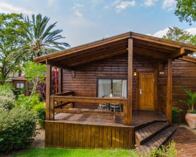 Les chambres de l'hôtel sont spacieuses et se situent dans l'aile de l'hôtel, tandis que les chalets en bois et les chalets de luxe, au rez-de-chaussée, disposent d'une terrasse privée et d'un bain à remous luxueux.