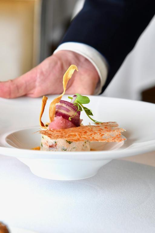 Le restaurant étoilé au guide Michelin est spécialisé dans les plats de fruits de mer. Vous pourrez prendre un verre au bar de l'hôtel ou sur la terrasse offrant une vue sur la mer, la vieille ville et l'île de Batz.