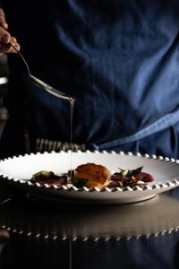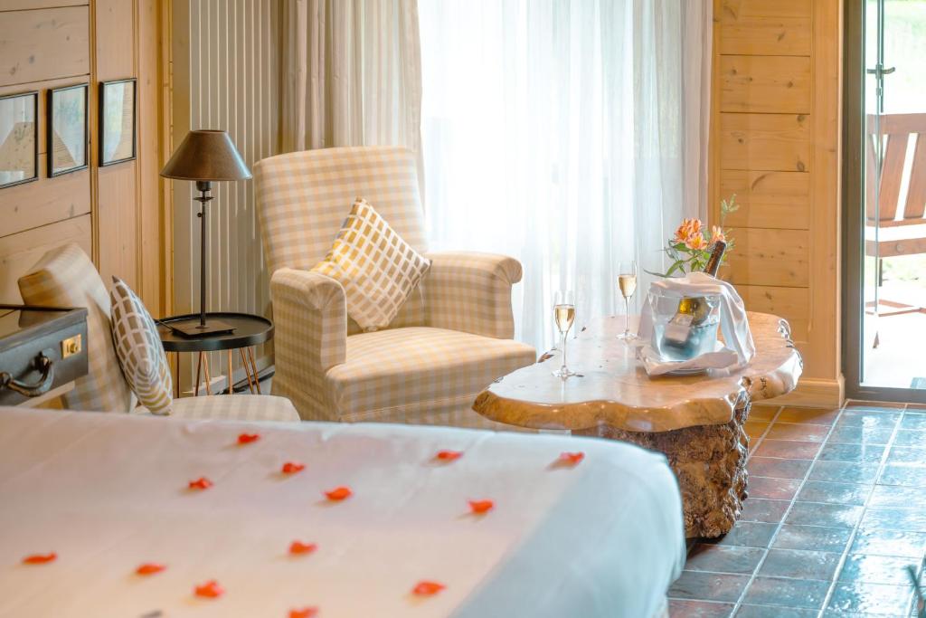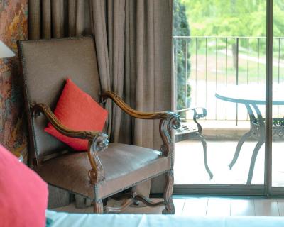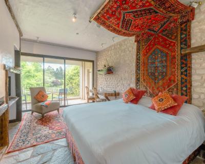 The hotel has a contemporary gourmet restaurant called La Table de Bois. There are also several bars where guests can relax on the terrace overlooking the pond by the fireplace or in the piano room.