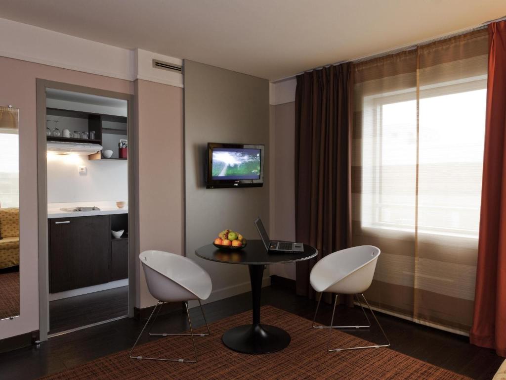 Vous pourrez également profiter des services proposés par l'hôtel (situé en face de la résidence), comme le petit-déjeuner, la salle de sport et le parking.
