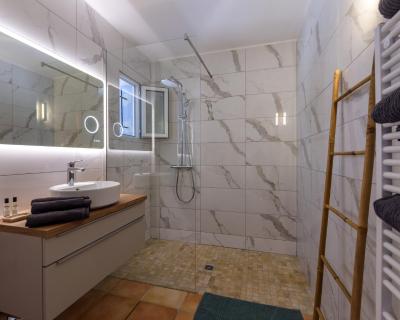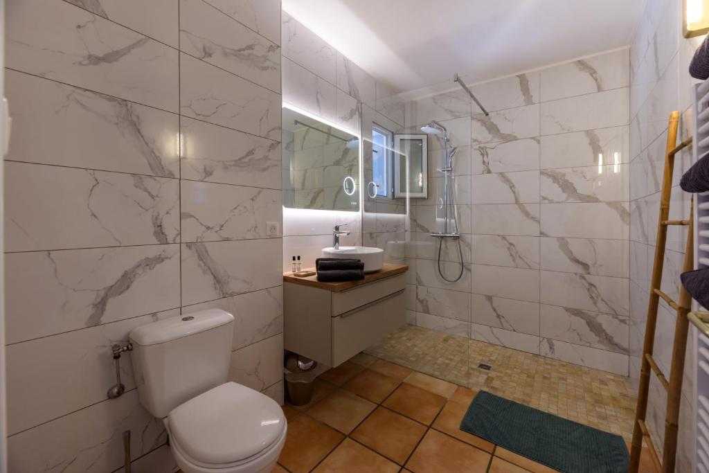 Chaque appartement comprend une télévision à écran plat et une salle de bains privative. Vous pourrez préparer vos repas dans la cuisine entièrement équipée et les déguster sur votre balcon offrant une vue sur la mer. Le linge de lit, les serviettes et le ménage sont inclus.