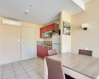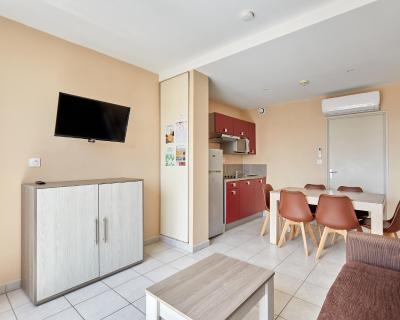 À côté du port de la station balnéaire du Cap d'Agde, l'établissement Résidence Odalys Du Golfe se trouve à seulement 400 mètres de la plage. Au cœur d'un jardin bordé de palmiers, il possède une piscine extérieure chauffée avec une terrasse bien exposée.