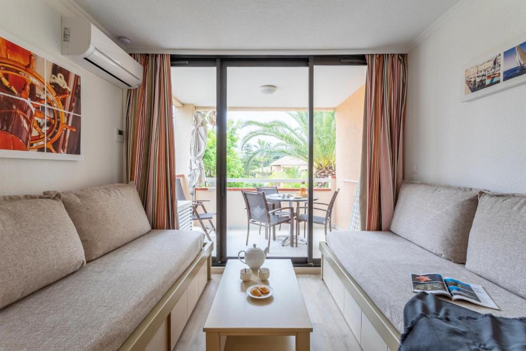 Les appartements de la Résidence Pierre & Vacances L’Anse De Pramousquier sont aménagés dans 8 immeubles connectés par des allées et entourés de plantes exotiques dans le parc de 1,5 hectare de la résidence.