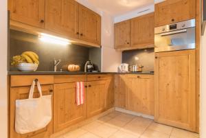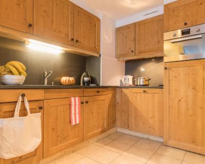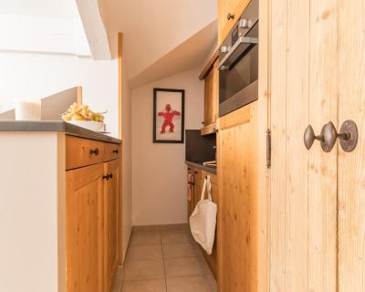 La kitchenette entièrement équipée s’ouvre sur la pièce à vivre. Veuillez noter que vous devrez nettoyer le coin cuisine avant votre départ.
