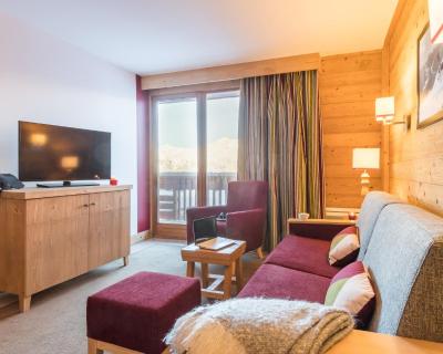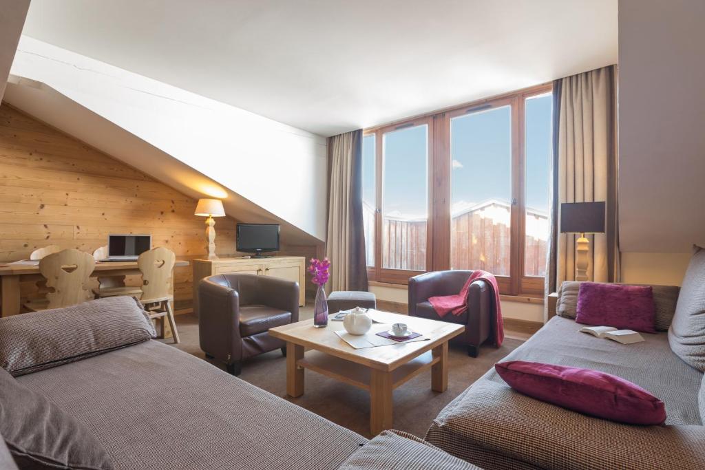 This 4-star residence has spacious yet cosy apartments with fine wooden furniture. The chalets are furnished in traditional Savoie style and have free WiFi, satellite TV and a private bathroom. The open-plan living area has a dining table and large sofas.