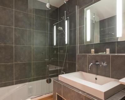 Vous disposerez de 2 salles de bains, dont une pourvue d’une baignoire et l’autre d’une douche et de toilettes séparées.