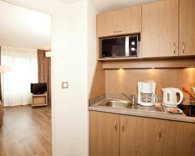 Revêtus de parquet, les studios comprennent un coin salon avec télévision à écran plat, un micro-ondes, des plaques de cuisson et une cafetière. Leur salle de bains privative est pourvue d'une baignoire et d'un sèche-cheveux.