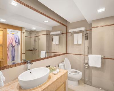 Elegantly decorated with modern amenities, each stylish room comes with flat-screen cable TV, a DVD player and a sofa set. A safety deposit box, ironing facilities and a minibar are standard in all units. Guests can enjoy sea views from the room. Complete with a shower, en suite bathroom are supplied with a bathtub and free toiletries.