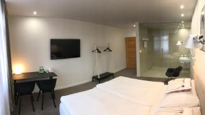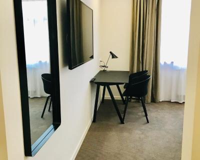 Les chambres élégantes disposent d'une télévision par satellite à écran plat, d'un coin salon et d'un bureau. La salle de bains entièrement équipée est pourvue d'un sèche-cheveux.