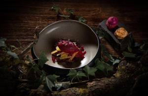 Le restaurant sur place sert des produits régionaux. Il propose aussi du café, des gâteaux faits maison, des glaces italiennes et des cocktails.