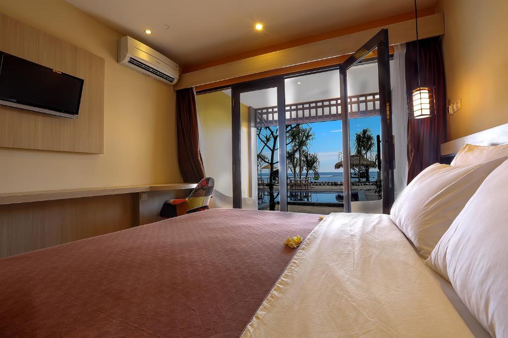Les chambres comprennent un balcon privé avec une banquette-lit offrant une vue panoramique sur la mer et la piscine. La salle de bains privative est pourvue d'une douche avec chaude et froide, ainsi que de serviettes fraîchement lavées. Les chambres sont dotées d'une télévision à écran plat avec les chaînes internationales.