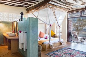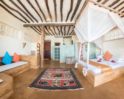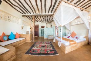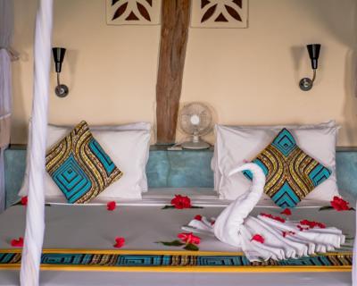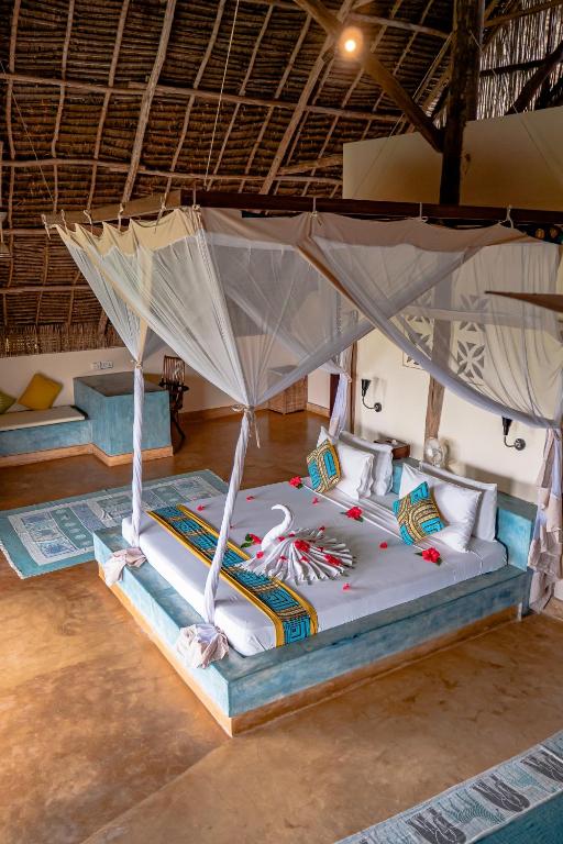 Vous séjournerez à 55 km de Stone Town et à 60 km de l’aéroport international de Zanzibar. Ce lodge se trouve en face de l’île de Mnemba, à 20 minutes de route de Matemwe.