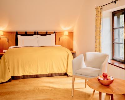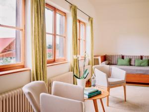 Les chambres élégantes du G'Schloessl comprennent un coin salon, une télévision par satellite et une salle de bains avec baignoire ou douche. Les suites comprennent une pièce à vivre avec un canapé.