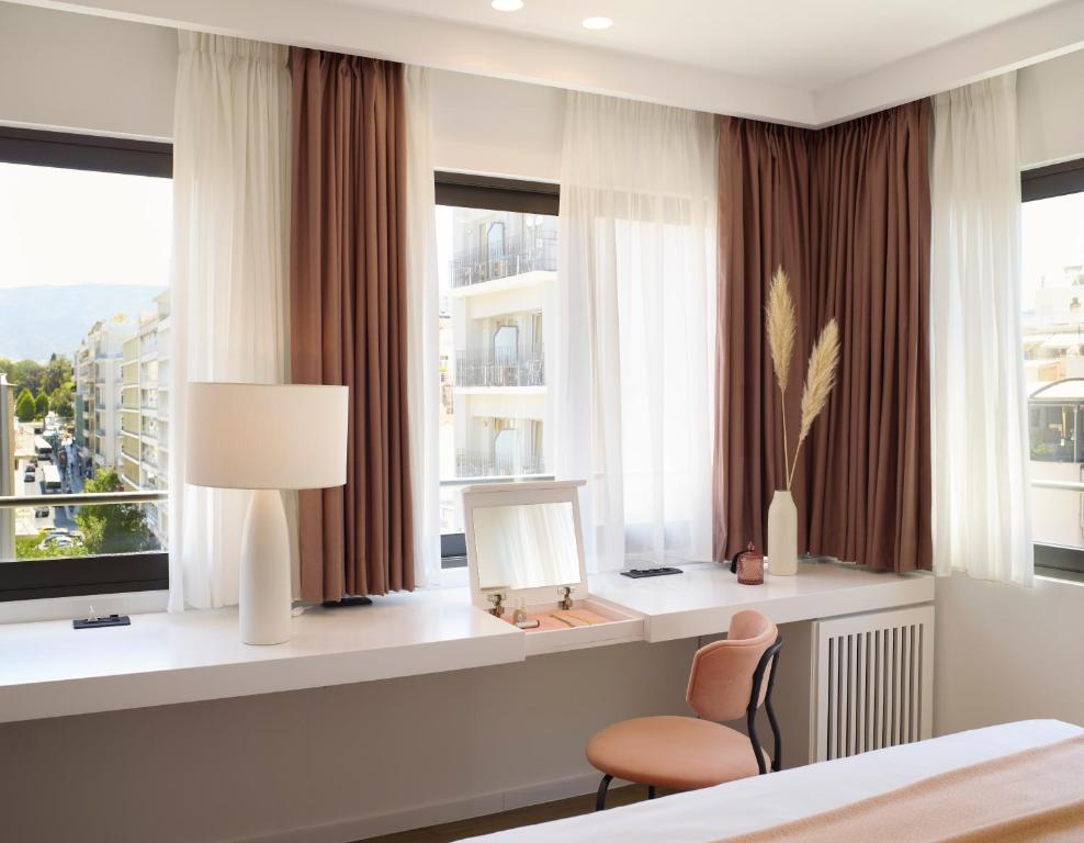 Toutes les chambres et suites sont équipées d'une coiffeuse, d'un bureau, de grands miroirs, d'une douche à l'italienne à effet pluie, de produits de beauté de luxe, d'un matelas ergonomique, d'une télévision connectée à écran plat, d'une machine à expresso et d'une connexion Wi-Fi gratuite.