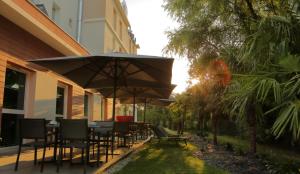 Cette spacieuse chambre climatisée bénéficie d’une vue sur le parc. Le logement dispose d’une connexion Wi-Fi gratuite, d’une télévision à écran plat de 81 cm et d’un coin bureau. La salle de bains est pourvue d’une baignoire et d’un sèche-cheveux. Les toilettes sont séparées. Une bouteille d’eau minérale gratuite vous sera fournie.