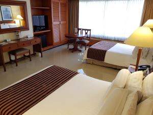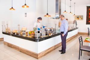 An American-style breakfast buffet with a variety of fresh tropical fruits is served daily. The Hotel´s Restaurant offers casual snacks and international cuisine and a spectacular city and mountain view.