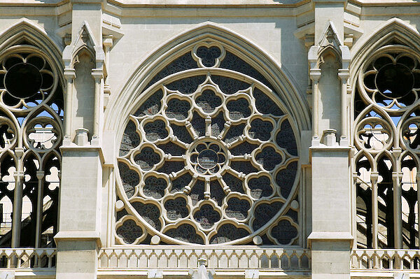 Cette église fut bâtie suivant les plans de François Reybaud qui adopta le style gothique du XIIIe siècle et la première pierre fut posée le 22 avril 1855 par Mgr de Mazenod. Cependant, l'édification ne fut pas sans problème : en 1862, l'architecte s'était retiré et un prêtre architecte, l'Abbé Joseph Pougnet, refit les plans ; puis il fallut l'aide des paroissiens de Saint-Vincent-de-Paul en 1885, qui réunirent trois millions de francs, pour permettre finalement l'inauguration le 20 septembre 1886. Ses deux flèches s'élèvent à 70 mètres . Remarquer les portes en bois ornées de panneaux de bronze et les superbes vitraux par Edouard Didron. Le programme des sculptures ornementales resta très largement inachevé mais on peut cependant considérer que nous sommes face à un édifice de qualité typique de la seconde moitié du XIXe siècle (voir à l'intérieur la grande maquette de l'église telle qu'elle aurait dû être si les sculpures avaient été réalisées).