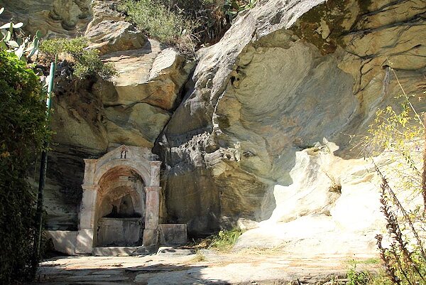 Bâtie au XIXè siècle au pied d'une paroi schisteuse érodée.