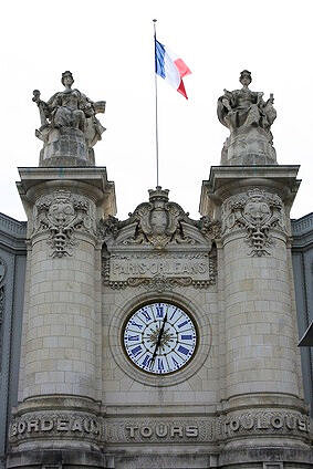 La gare de Tours a été construite entre 1896 et 1898 sous la direction de l'architecte tourangeau Victor Laloux. Cette "nouvelle" gare réunit en un seul bâtiment le "débarcadère", construit en 1846 et démoli en 1895, et la gare de Vendée desservant les Sables-d'Olonne.
