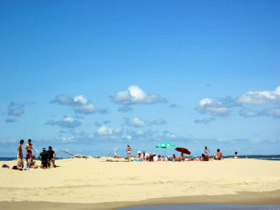 Banc de sable qui reste sur une toute petite partie, à découvert à marée haute, prés du Phare de Cordouan. Une nouvelle île pour une superbe plage ! Entre ciel et terre !