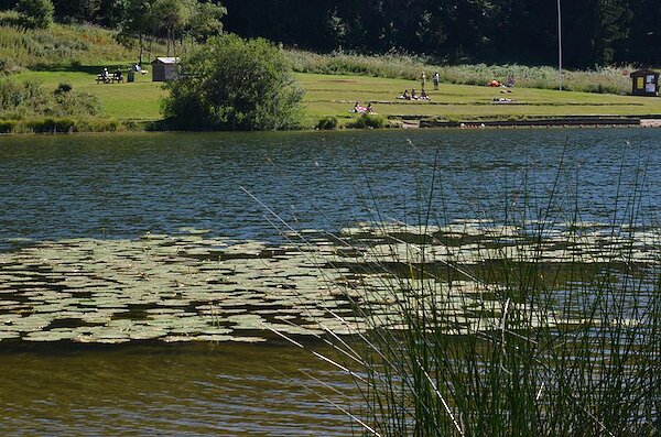 Une plage de sable est aménagée, au soleil, vous vous baignez au milieux des canards, peu farouches, qui amusent les enfants.
