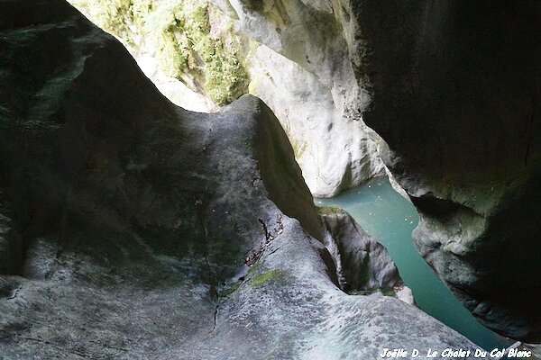 C'est une configuration originale qui fait avant tout l'intérêt des Gorges du Pont du Diable : la vallée, déjà très encaissée au niveau du Jotty, se termine par une fissure étroite, profonde et en partie souterraine ;