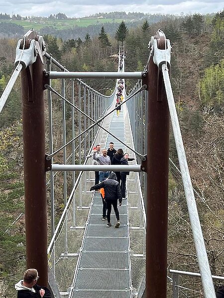 Passerelle himalayenne la plus longue de France avec ses 268m, la Passerelle des Gorges du Lignon vous propose une expérience hors du commun en Auvergne. Suspendu à 78 m au-dessus du Lignon du Velay, oserez-vous franchir le Pas du Géant ?