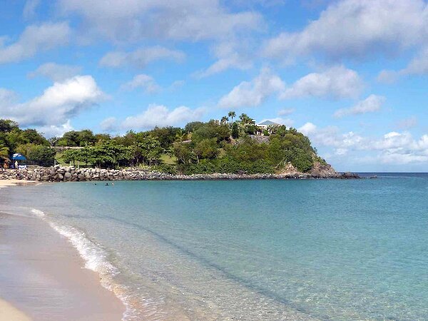 Plage aux eaux calmes et turquoises. Excellent restaurant sur la plage