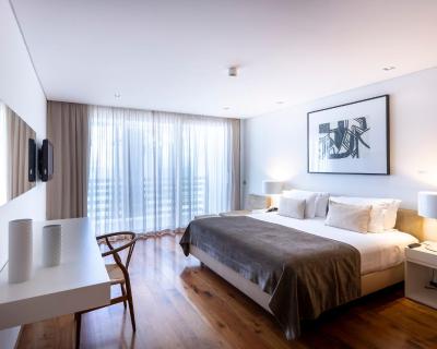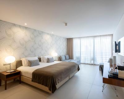Les chambres luxueuses du Troia Design Hotel sont spacieuses et présentent un design moderne. Chaque chambre est dotée d'un balcon, d'une télévision à écran plat et d'un coin salon. Certaines chambres comportent une kitchenette.
