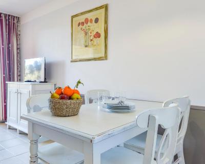 The price includes bed linen, toilet linen, household linen (bathmat and dish towel), a cleaning kit, basic WiFi access (up to 5 devices for web browsing, emails and searches), charges and taxes (excluding tourist tax and application fee), access to the pool area and sports/playground facilities (excluding tennis and archery), and basic entertainment (fitness sessions, contests and parties). End-of-stay cleaning is included (excluding dishes and the kitchen corner). Beds made upon arrival are available at an additional cost. The aquatic centre is open from April to September.