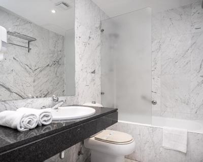 Cette chambre double comprend une salle de bains privative pourvue d'une baignoire ou d'une douche, d'un bidet et d'un sèche-cheveux. Les chambres situées aux étages supérieurs sont desservies par un ascenseur. Ce logement comporte 1 lit.