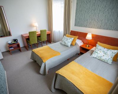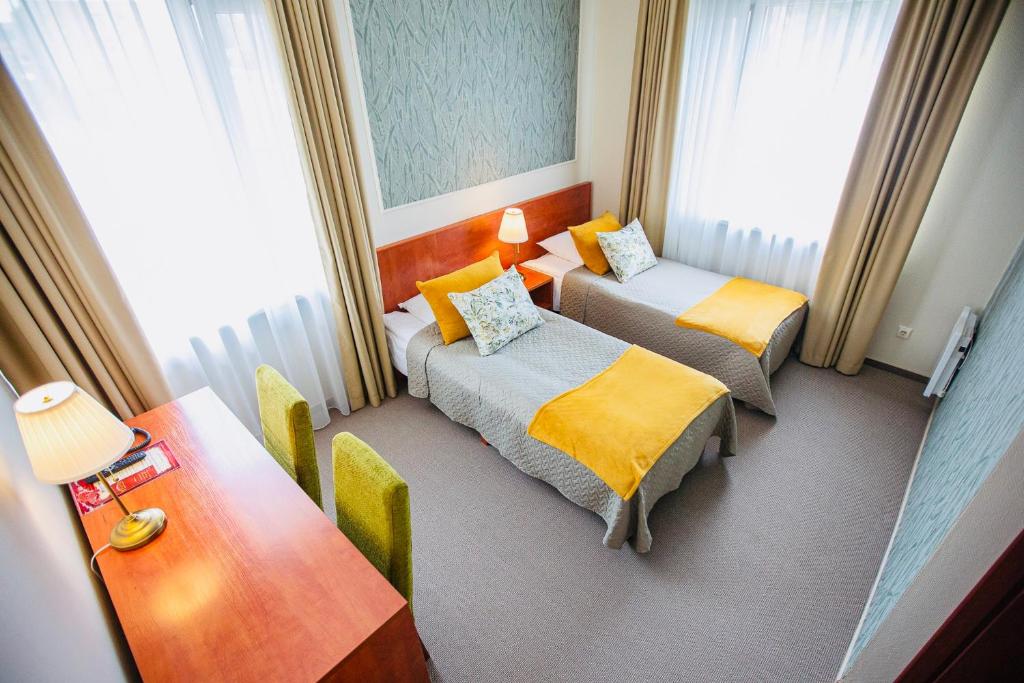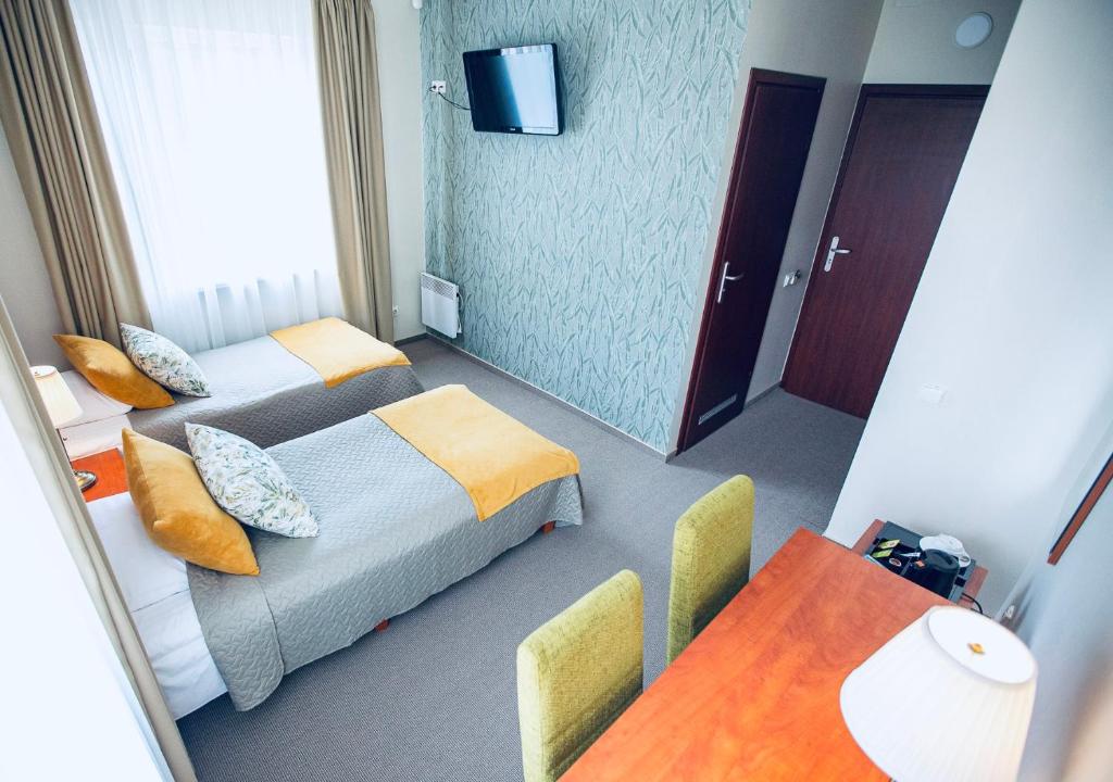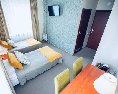 Toutes les chambres de l'établissement sont équipées de la télévision par câble, d'une salle de bains et d'un bureau. Vous pourrez déguster une cuisine internationale et lituanienne traditionnelle dans le restaurant. Un bar à bières est également disponible sur place.
